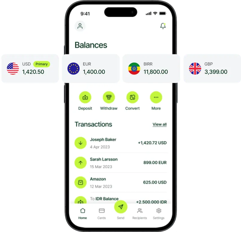 Send and receive money globally, manage multi-currency accounts, and use Capital Guard cards.